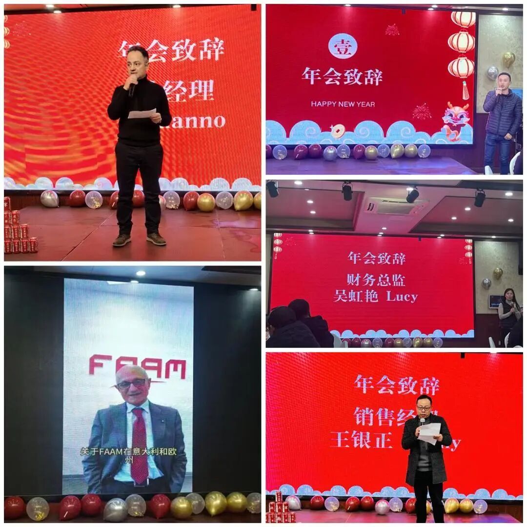 至此年度盛会隆重召开之际,法阿姆中国总经理Ermanno Vitali、锂电经理许经理、财务总监吴经理、销售经理王经理、向全体员工致以亲切的问候和新年的祝福。同时我们也接到了来自SERI集团和FAAM意大利总部,FAAM副主席Federico发来的新年祝福。2023我们团结一心,奋勇争先,2024,让我们继续开拓创新,砥砺前行。