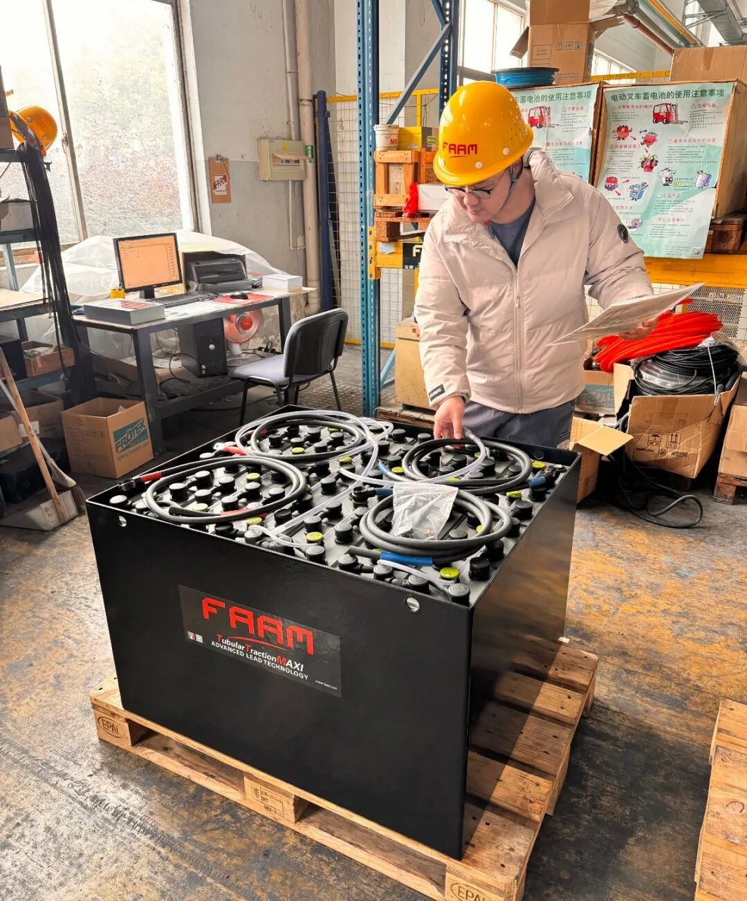 2019年,卫超加入FAAM大家庭,一开始在质量检验部工作,由于自身工作出色,于2020年被调到技术部门,主要负责防爆电池的设计及图纸确认,并为客户提供技术支持。卫超并没有就此停滞不前,他不断学习,提升自我,2022年,公司领导决定让卫超兼任EHS(公司环境,健康,安全管理),负责公司的环境管理及安全生产等。In 2019, Wei Chao joined the FAAM family, initially working in the Quality Inspection Department, due to his excellent work, he was transferred to the technical department in 2020, mainly responsible for the design and drawing confirmation of explosion-proof batteries, and provide technical support to customers.